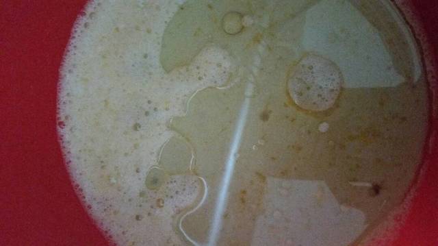 Bước 1: Trứng gà, sữa tươi, dầu ăn, đường đánh tan bằng phới lồng.